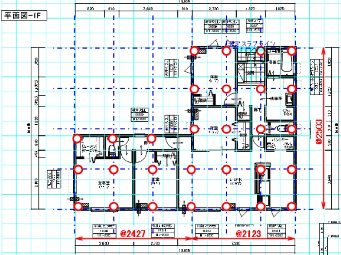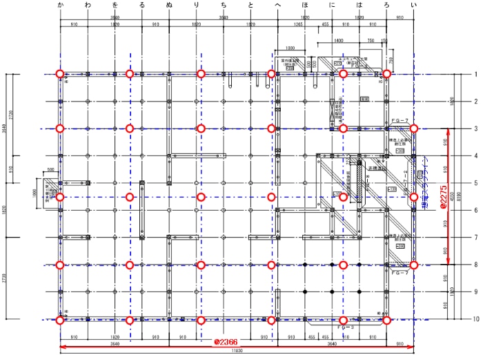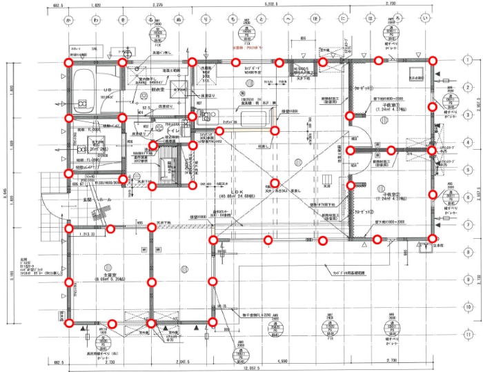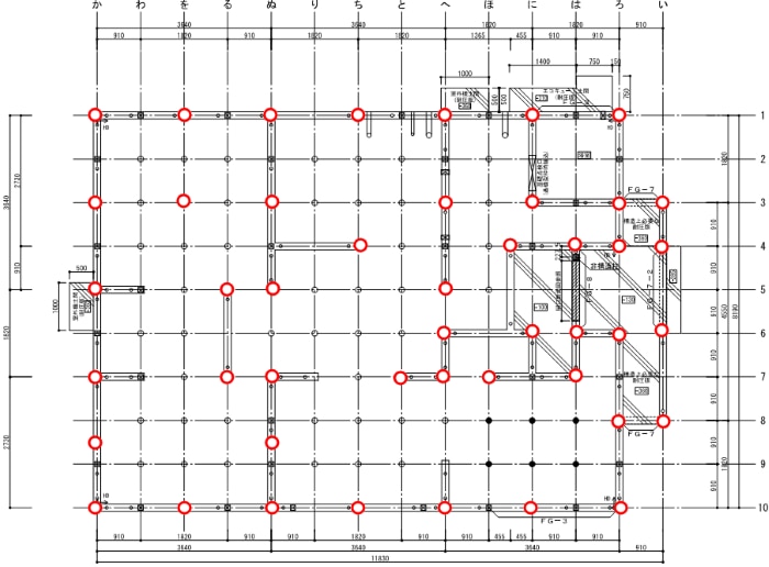また、出隅・入隅は荷重が集中する箇所になるので、杭を配置すべき箇所になります。出隅・入隅が少なくなればその分杭の配置本数が減ります。