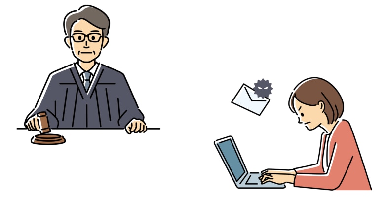企業側の中止要求にも関わらず、大量のメール送信を続ける場合や、顧客が嫌がらせのためにわざとメールにウイルスを添付して送信してきた場合などは、裁判所からのメール送信禁止の仮処分命令を発令する等を検討してもよいでしょう。