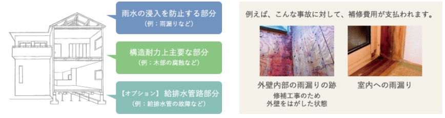 引渡し後の住宅について、保証対象部分における隠れた不具合による損害を補償します。