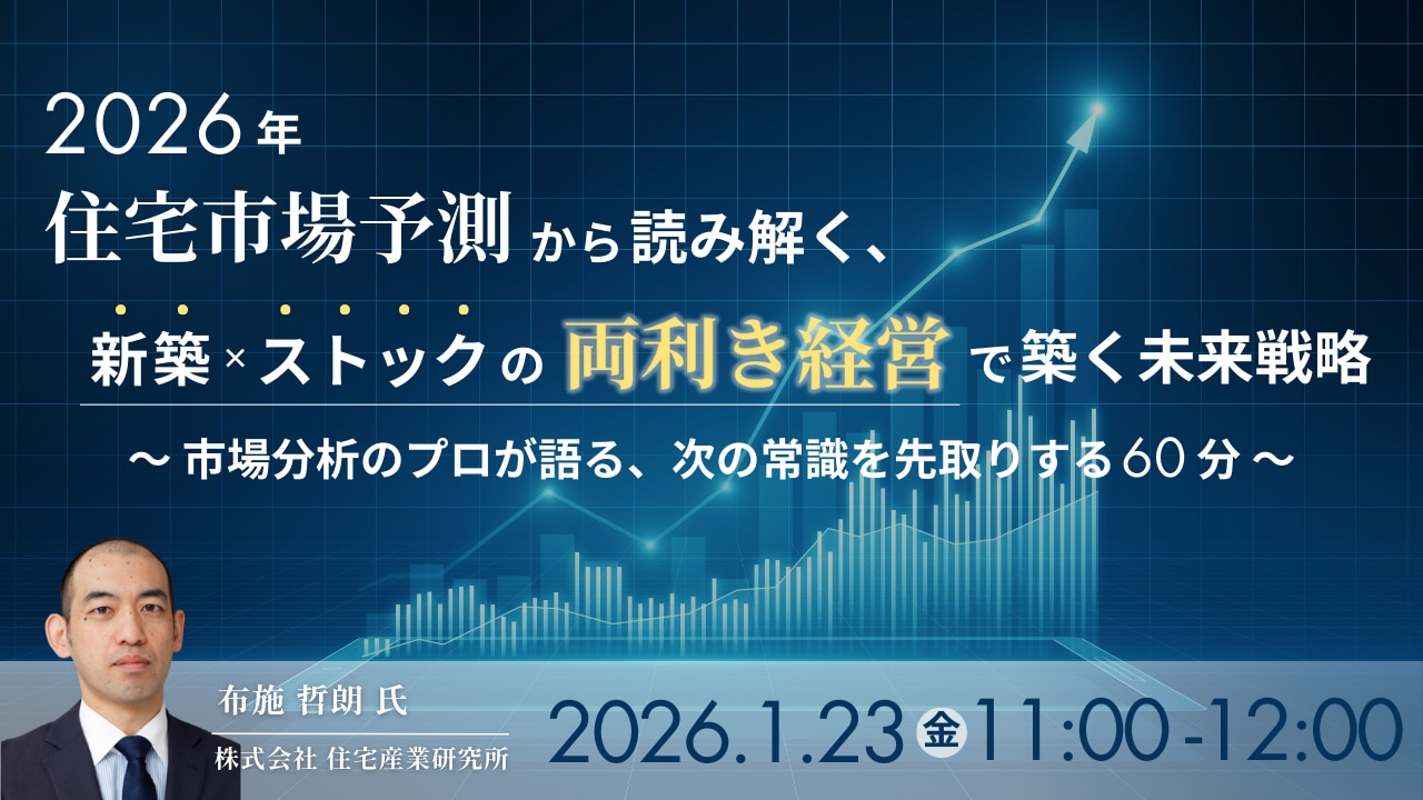2026年住宅市場予測から読み解く、新築×ストックの “両利き経営” で築く未来戦略 ~ 市場分析のプロが語る、次の常識を先取りする60分 ~ |